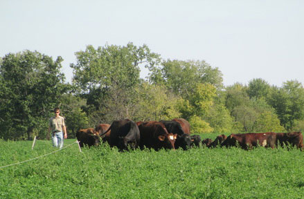 Our beef cows spend their life eating a nutrient-dense "salad bar" of organic forages. During the summer, they graze lush pastures and during the winter when the pastures are dormant, they munch on organic hay in the barn. We keep the process of raising beef very simple by eliminating the need for growth stimulants, hormones and antibiotics. Grass fed beef is so much better for you!