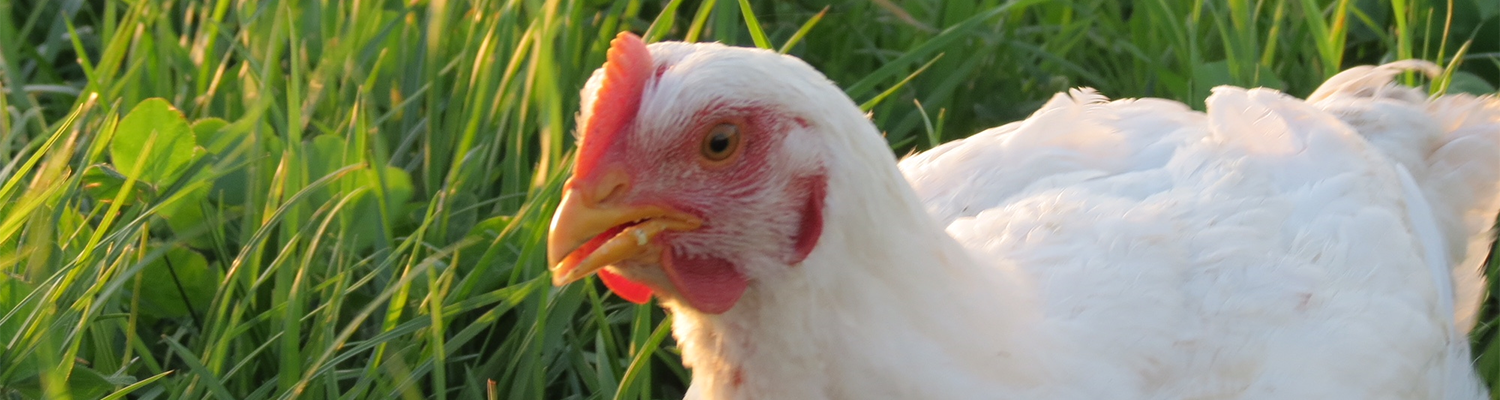 After 3-4 weeks in the brooder, the quickly growing chicks are transported out to the pasture pens. A diet of lush, green grass awaits them, supplemented with an organic feed mix. The pens are moved twice a day, to provide them with a fresh salad bar. Their environment is one of clean air & sunshine, plenty of room to roam (within the pen of course!), and organic grass and feed. What more could they need to produce such healthy, delicious meat?