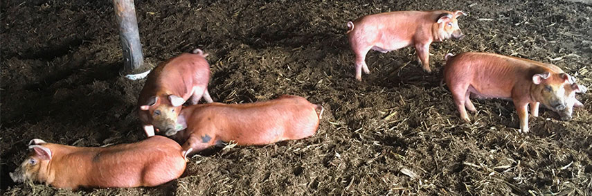 Our hogs are raised with a continual supply of fresh air and sunshine. They have an organic diet of the extra milk from our cows, corn, oats and extra scraps. There is plenty of room to roam and root in their pen, so they can express their "piggyness". Our hogs never receive any hormones or antibiotics. This way of raising hogs produces a wonderfully tasting cut of meat that is healthy for you!